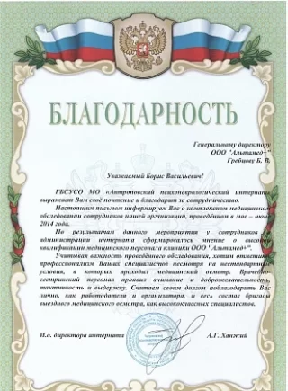 Наша деятельность полностью лицензирована, в связи с чем Вы можете быть на 100% уверены в высоком качестве лечения. Клиника "Альтамед+" признана лауреатом как "ЛУЧШАЯ ЧАСТНАЯ КЛИНИКА"