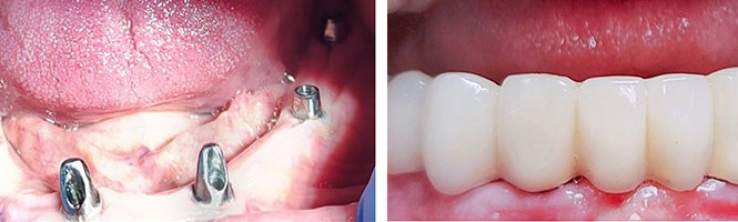 В ходе лечения пациенту была проведена имплантация All-on-6 (Всё на шести) швейцарской системой Straumann. На импланты установлен металлокерамический несъёмный протез.