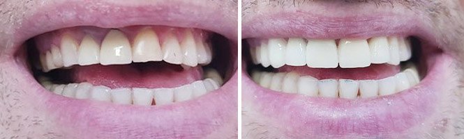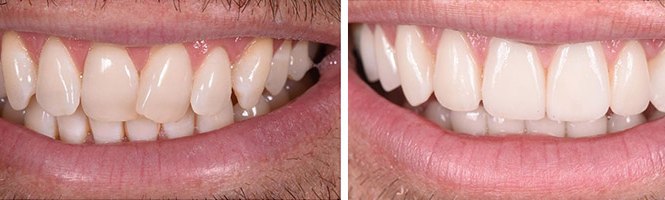 В клинику обратился мужчина с жалобами на скученное положение зубов, эстетический дефект.
