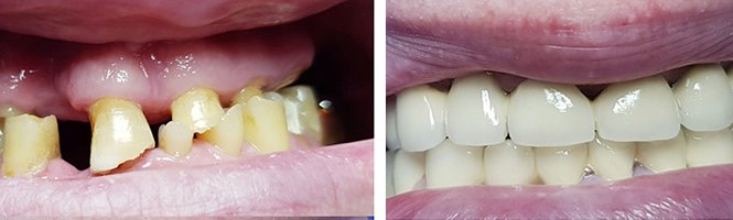 В ходе лечения пациенту была проведена имплантация All-on-6 (Всё на шести) швейцарской системой Straumann. На импланты установлен металлокерамический несъёмный протез.